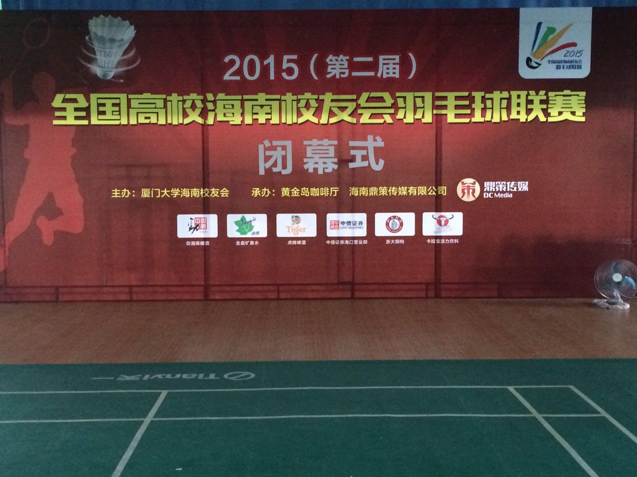 由我司全程贊助的2015(第二屆)全國高校海南校友會(huì )羽毛球聯(lián)賽勝利閉幕!此次比賽吸引了32所高校的海南校友會(huì )代表隊約600多人參加,規模之大、人數之多前所未有。比賽聘請了專(zhuān)業(yè)的裁判團隊,采取五場(chǎng)制混合團體賽,在兩天內完成全部賽程并決出冠亞季軍。