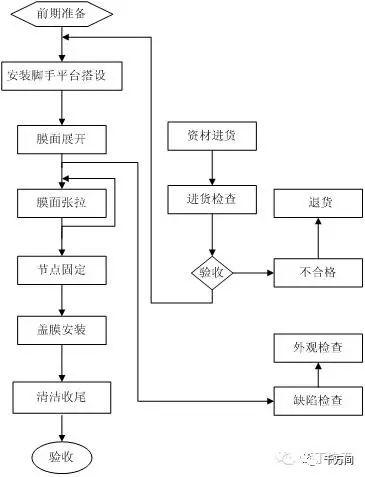 (1)膜面安裝前對現場(chǎng)情況進(jìn)行確認,會(huì )同相關(guān)單位完成對主結構的交接工作。