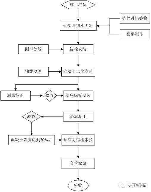 預應力錨栓、基座底板施工工藝要點(diǎn):