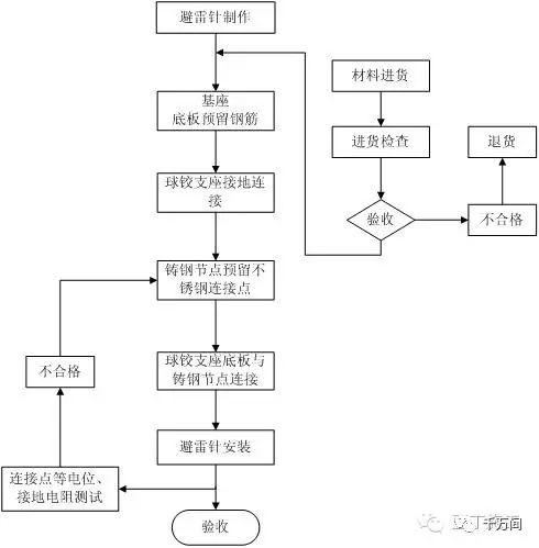 (5)鋼結構安裝完成后將避雷針焊接到鑄鋼內、點(diǎn)鋼管上,座部加不銹鋼肋板加固。