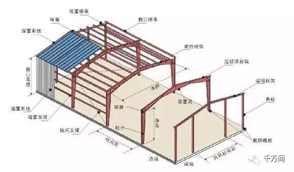 輕型鋼結構由基礎梁、柱、檁條、層面和墻體組成