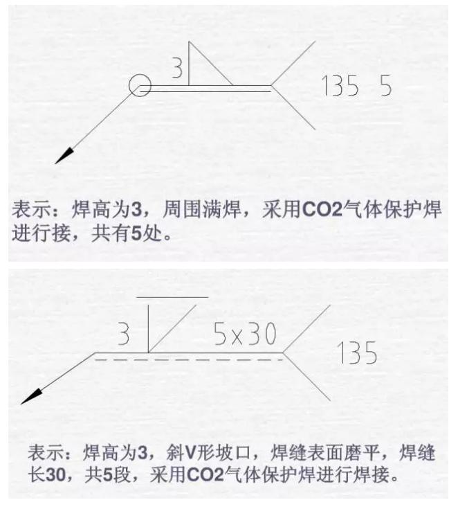 5、箭頭線(xiàn)相對焊縫的位置一般無(wú)特殊要求,但在標注單邊形焊縫時(shí)箭頭線(xiàn)要指向帶有坡口一側的工件。