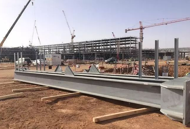 大型鋼柱一般在變截面處或肩梁上部分段,進(jìn)行分段運輸。工地拼裝后,用焊接或高強度螺栓連接,組成整根柱子進(jìn)行吊裝。