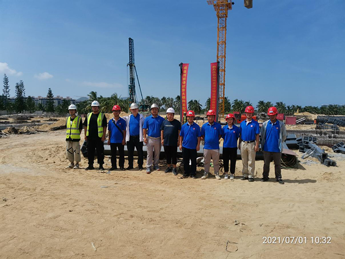 今年是中國共產(chǎn)黨成立100周年,百年恰是風(fēng)華正茂。2021年7月1日上午10點(diǎn)08分,在甲方單位、監理單位等領(lǐng)導的共同見(jiàn)證下,由浙大鋼構承建的海南綠城藍灣小鎮繼2019年開(kāi)工的香樟苑以來(lái),第五個(gè)鋼結構裝配式高端住宅項目——云棲居南區鋼結構工程項目首根鋼柱吊裝順利完成,項目正式進(jìn)入鋼結構主體施工階段。
