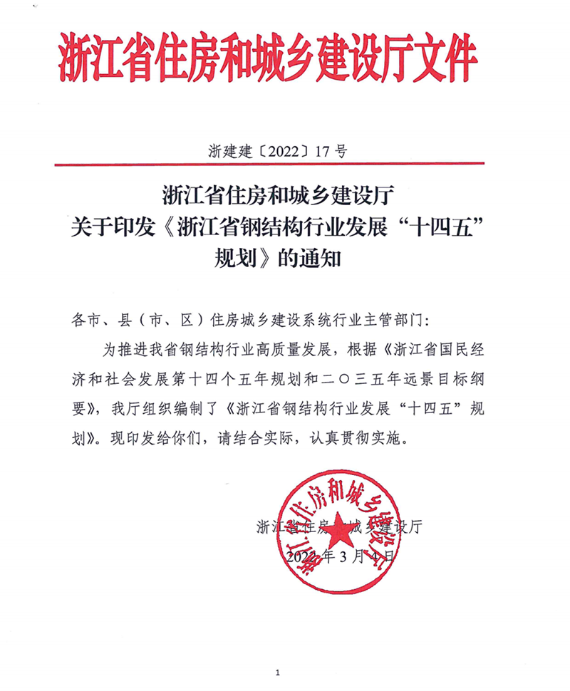關(guān)于印發(fā)《浙江省鋼結構行業(yè)發(fā)展“十四五”規劃》的通知