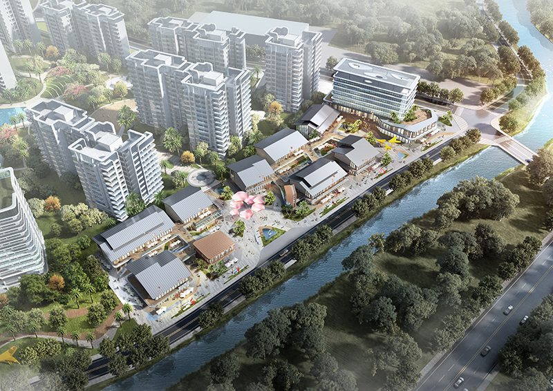 項目總建筑面積 147049.14 ㎡,其中地上計容建筑面積 105298.89 ㎡, 架空層、屋頂建筑面積 5007.3 ㎡,地下建筑面積 36742.95 ㎡。地塊西側包括 17 棟高層住宅建筑, 10~13 層,高度 40 米以下,住宅計容建筑面積 88534.06 ㎡,社區配套面積 970 ㎡;東側商業(yè)街北端為一棟商業(yè)樓,8 層,高度 28m,其余為兩層高的商業(yè)街,商業(yè)計容建筑面積 15794.83 ㎡。
