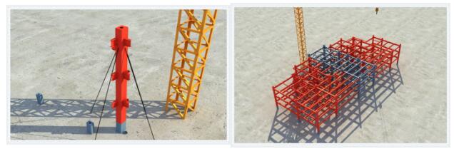 2、隱式框架-鋼支撐結構體系以三層為一個(gè)單元施工,鋼梁一次吊裝三層,吊裝完成后安裝、焊接,樓板采用自承式鋼筋桁架樓承板,三層同時(shí)澆筑,最終達到8-10天1個(gè)單元的施工速度,平均三天一層。